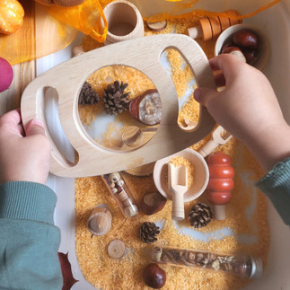 Conkers and acorns are one of the best loose part resources, add some pots and scoops and watch as your little one explores.